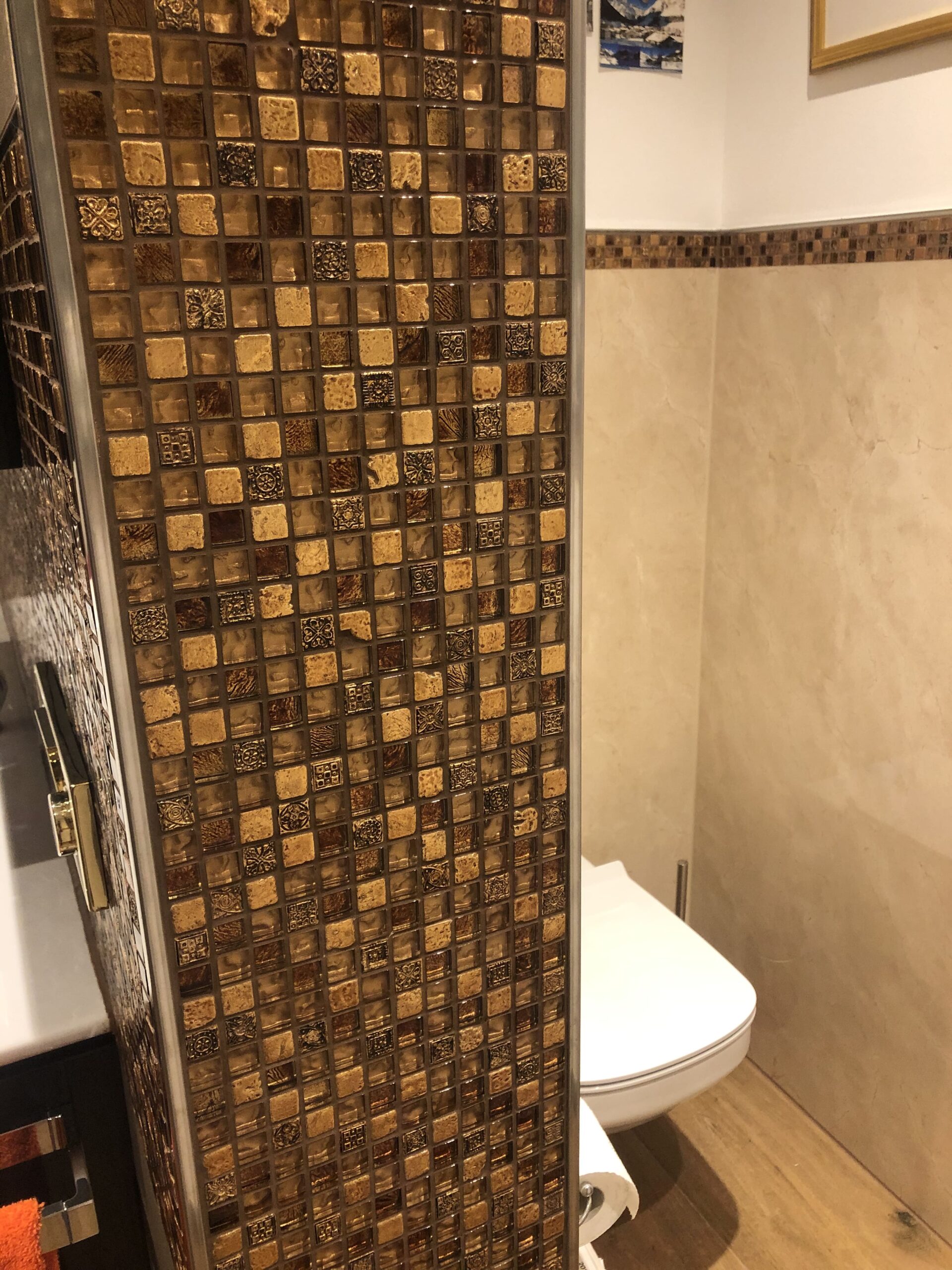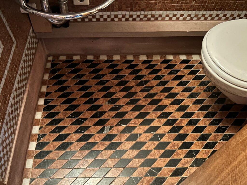 Sie möchten ein Bad, das Eindruck hinterlässt? Mit aufwendig verlegten Mosaikfliesen in geometrischen Mustern schaffen wir ein Design-Statement, das Tradition und Moderne vereint. Das hier gezeigte Rautenmuster bringt Tiefe und Dynamik in kleine Räume – perfekt für WC, Gäste-Bad oder Flur.